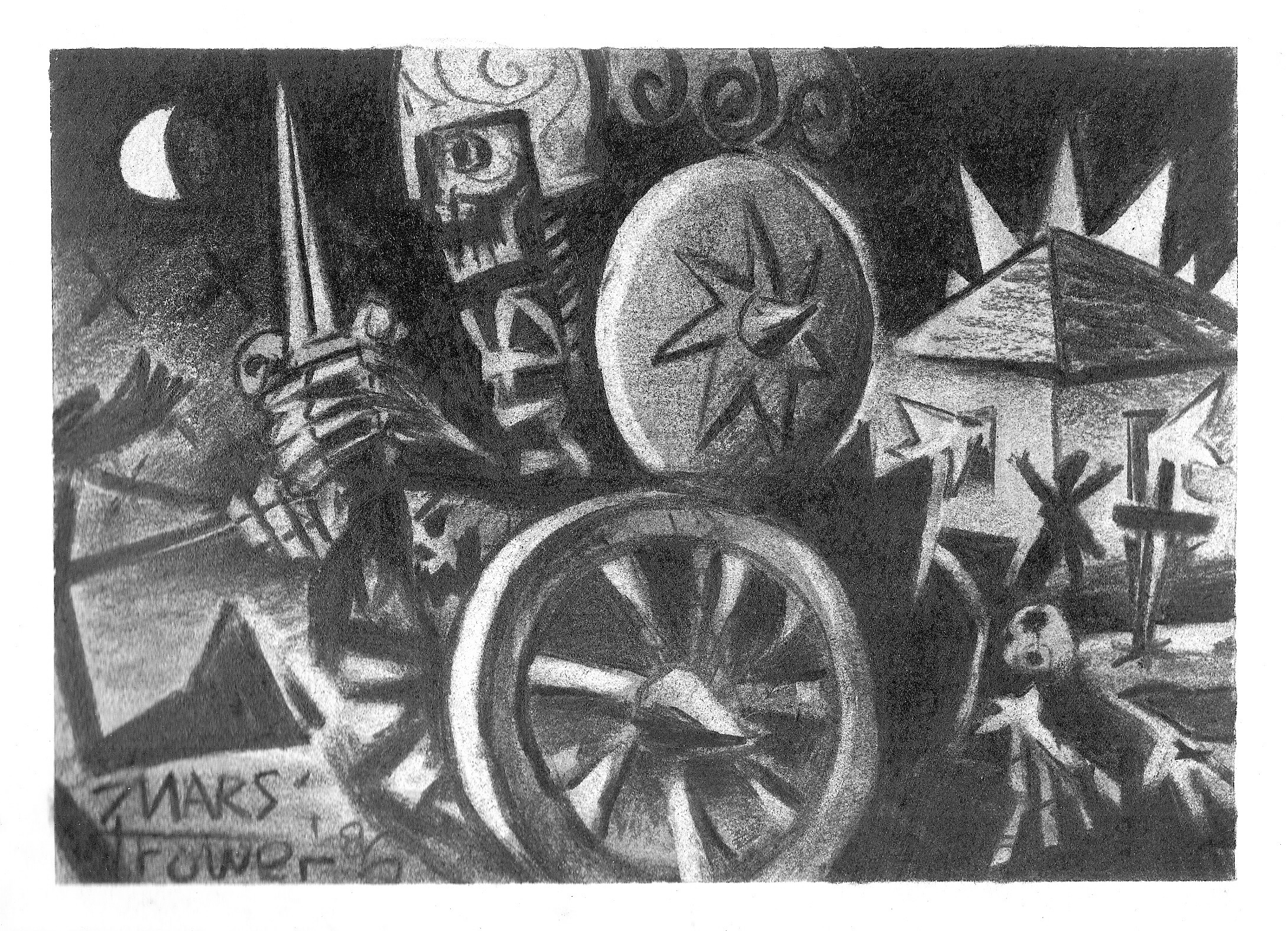 For this post, we are showing again a drawing and the resulting painting. In this case, the drawing and the painting are extremely similar. This drawing has a sort of Guernica feeling to it. I think the graphic marks reflect the violence of the theme. The theme is Mars, the bringer of war (according to Gustav Holst). Unfortunately, we humans do not seem to need someone to bring war to us, because we can do it so well on our own. War itself will be a theme in a future blog post.