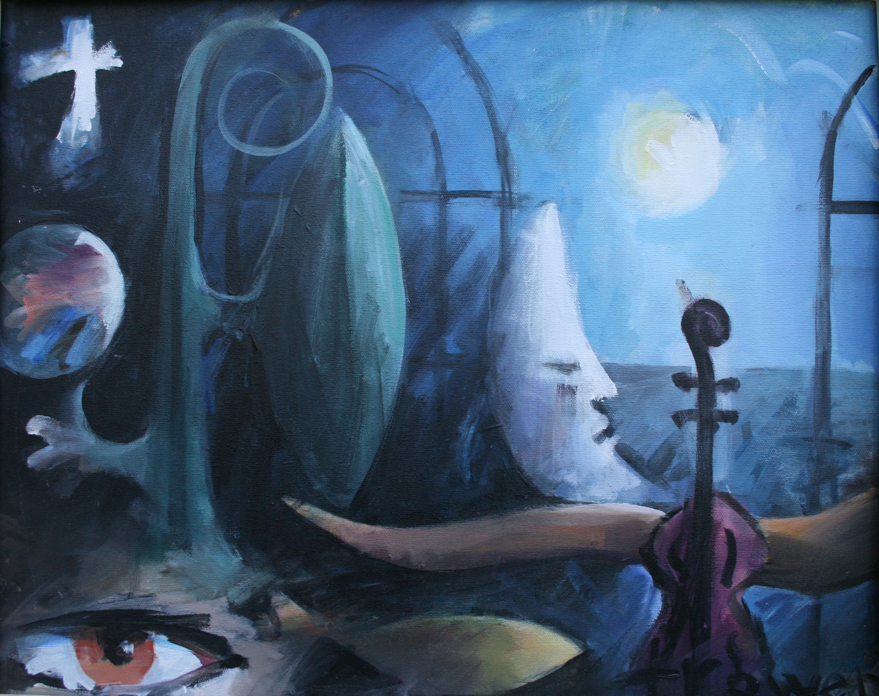 The second is called “The Earthworms Lament” and is a much more colourful picture from a later period in my life. I think I was trying to embody the feeling that sad music gives you, hence the lament in the title.